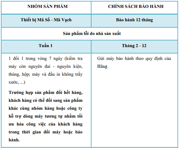 Chính sách bảo hành đối với các sản phẩm được phân phối tại Mayintemmavach.net - Công ty TNHH Thế Giới Mã Vạch