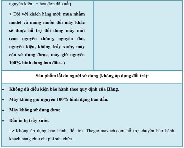 + Trong trường hợp máy không lên nguồn hoặc không xác định được lỗi, phải chuyển Trung Tâm Bảo Hành của Hãng thẩm định trước khi ra quyết định nhập đổi, nhập trả.