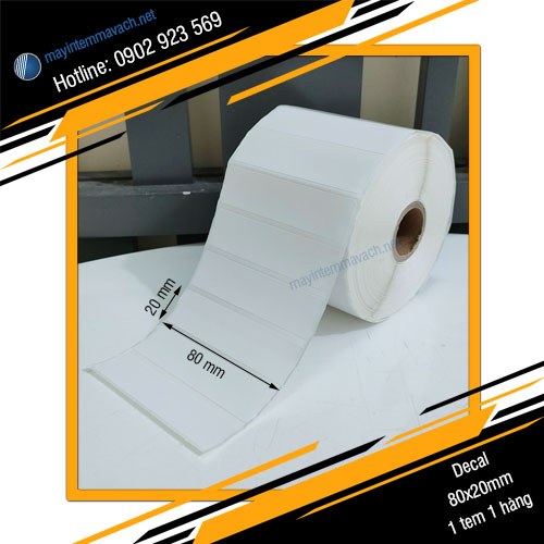 DECAL GIẤY - DECAL THƯỜNG IN MÃ VẠCH 80X20MM 1 TEM 1 HÀNG
