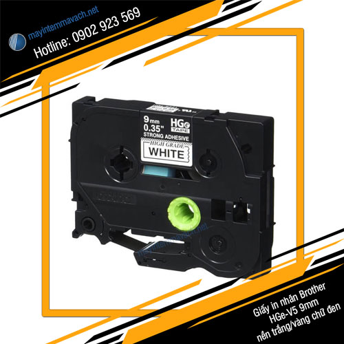 4/ Mua giấy in nhãn Brother HGe-V5 9 mm nền trắng/vàng chữ đen