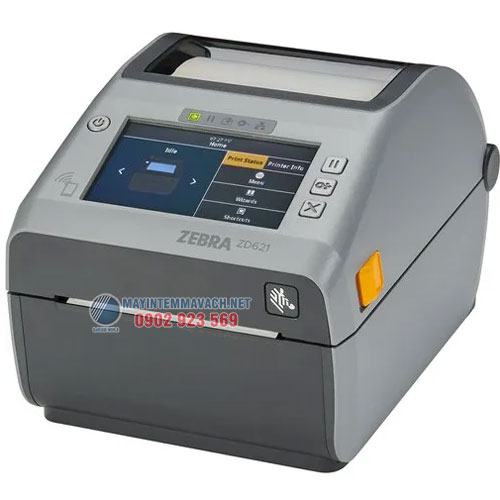 | Kích thước máy | In nhiệt trực tiếp (ZD621d): 8,7 inch L x 7,0 inch W x 5,9 inch H 221 mm L x 177 mm W x 151 mm H Truyền nhiệt gián tiếp (ZD621t): 10,5 inch L x 8,0 inch W x 7,5 inch H 267 mm L x 202 mm W x 192 mm H |