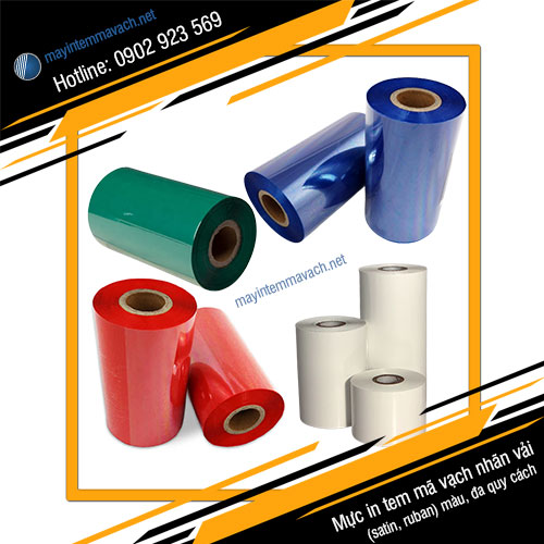 5/ Mua mực in tem mã vạch nhãn vải (satin, ruban) màu, đa quy cách: